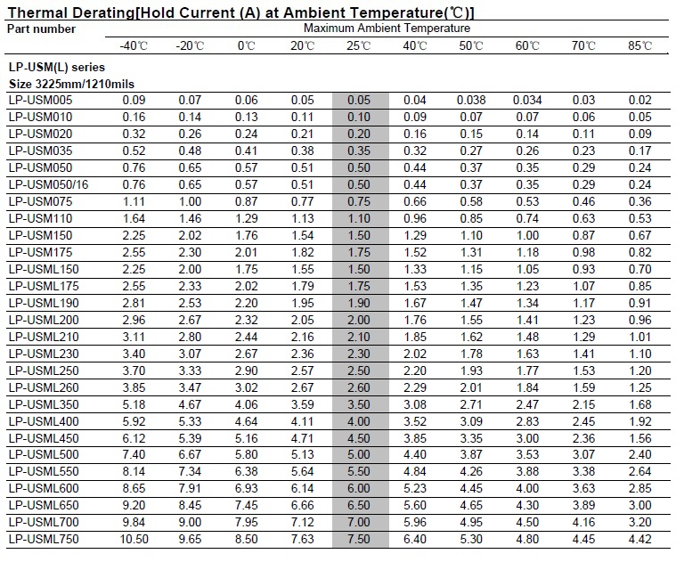 可恢復保險絲【LP-USM(L) 1210 Series】()
