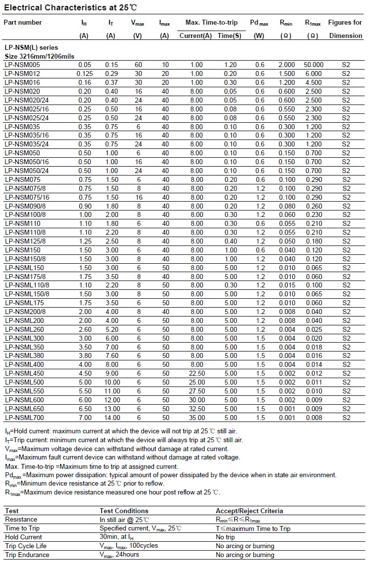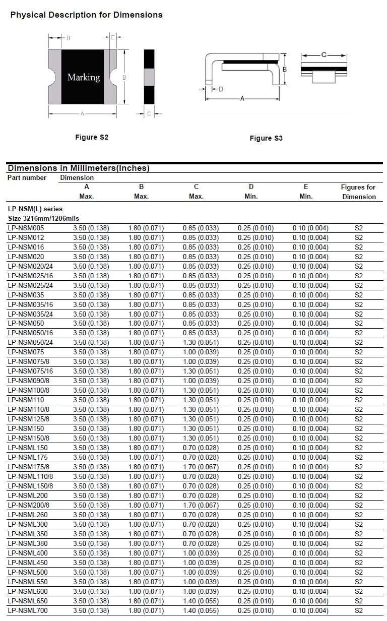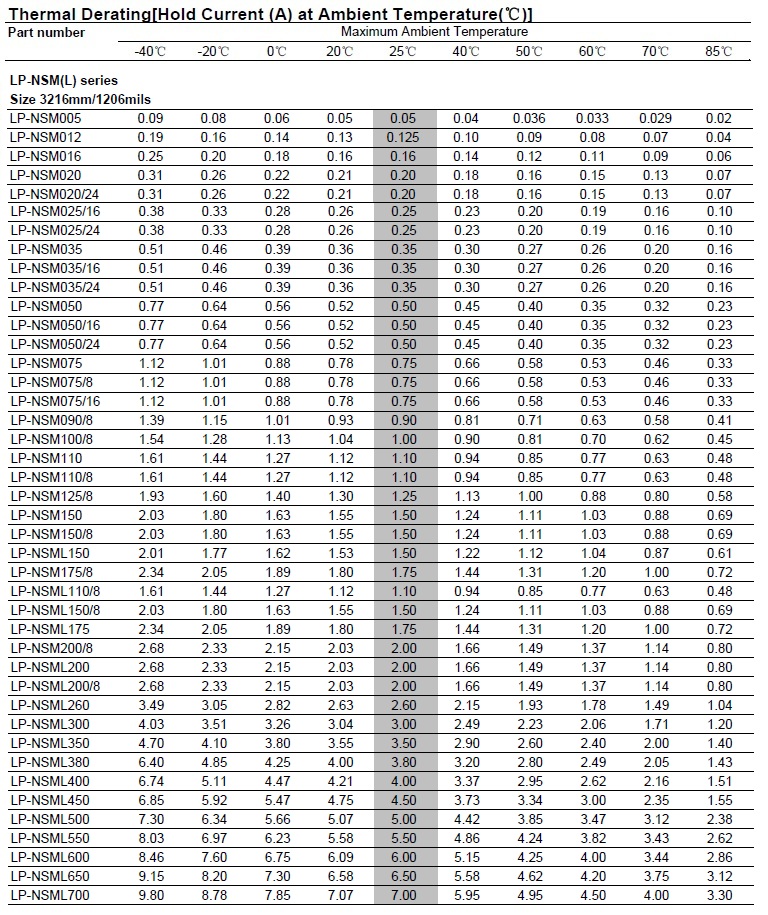 可恢復保險絲【LP-NSM(L) 1206 Series】