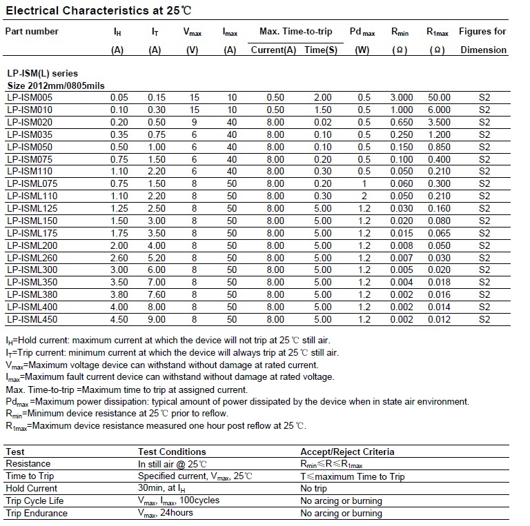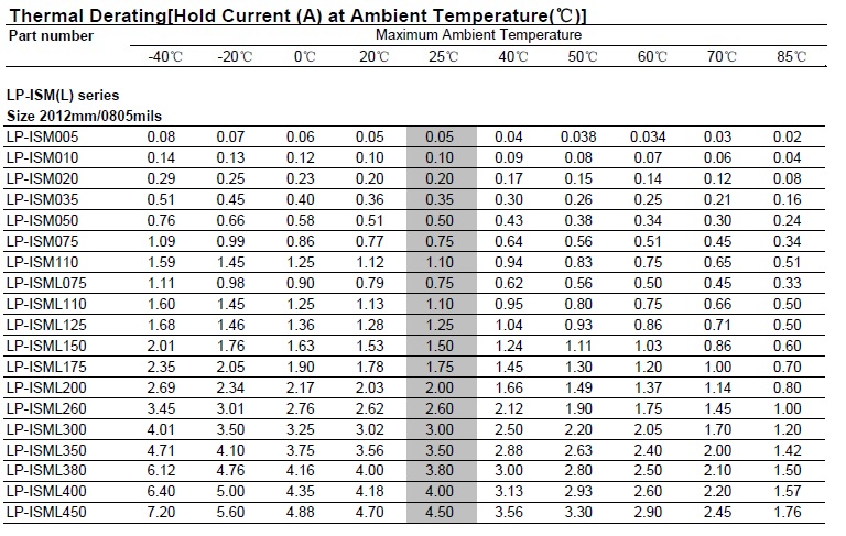 可恢復保險絲【LP-ISM(L) 0805 Series】